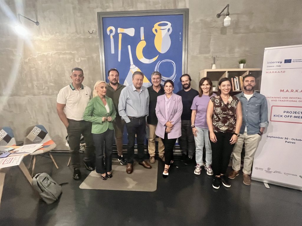 Το έργο MARKATO-Maintaining And Revitalizing Knowledge And Traditional Occupations (Διατήρηση και ανανέωση της γνώσης αναφορικά με τα παραδοσιακά επαγγέλματα) ξεκίνησε τις εργασίες του επίσημα στην Πάτρα, στις 30 Σεπτεμβρίου και 1 Οκτωβρίου 2025, σηματοδοτώντας την έναρξη μιας σημαντικής διασυνοριακής συνεργασίας μεταξύ Ελλάδας και Ιταλίας στο πλαίσιο χρηματοδότησης μέσω του Προγράμματος Interreg VI-A Ελλάδα–Ιταλία 2021–2027.