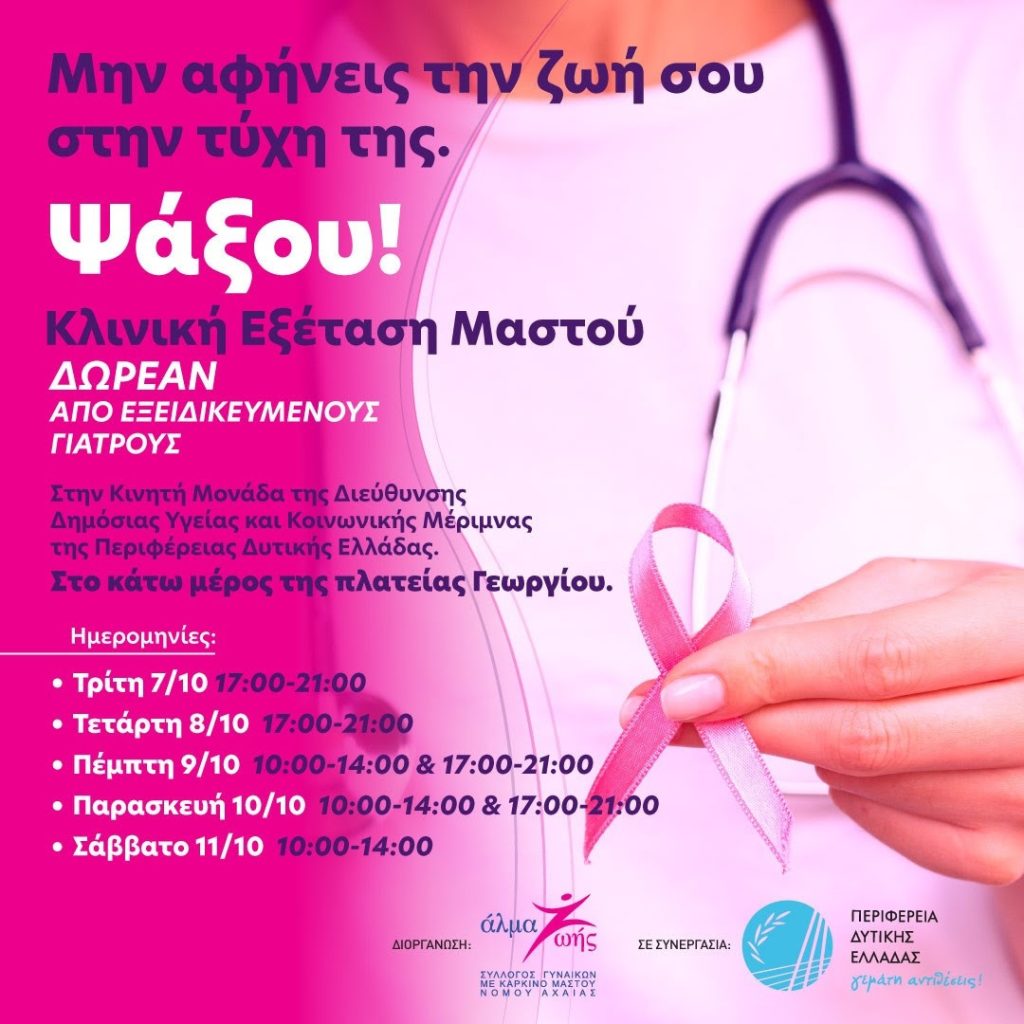 Δωρεάν Κλινικές Εξετάσεις Μαστού στην Πάτρα – Η πρόληψη σώζει ζωές