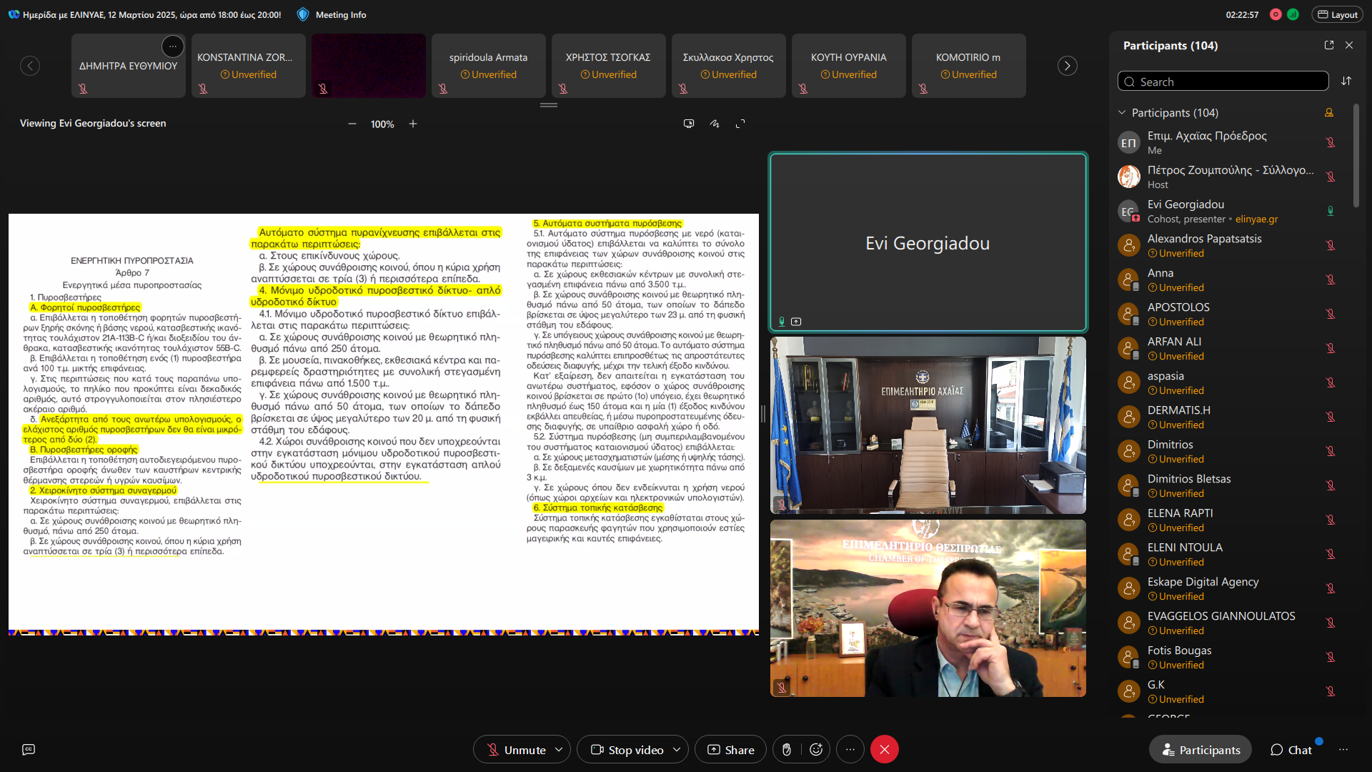 Με μεγάλη συμμετοχή πραγματοποιήθηκε η διαδικτυακή ημερίδα με τίτλο «Υποχρεώσεις τήρησης μέτρων πυροπροστασίας και πυρασφάλειας στις μικρές επιχειρήσεις», στην οποία συμμετείχε ως συνδιοργανωτής το Επιμελητήριο Αχαΐας σε συνεργασία με το Ελληνικό Ινστιτούτο Υγείας και Ασφάλειας στην Εργασία (ΕΛΙΝΥΑ). Την εκδήλωση υποστήριξε, επίσης, ο Σύλλογος Υπαλλήλων Επιμελητηρίων Πελοποννήσου – Ηπείρου – Ιονίων Νήσων – Δυτικής Ελλάδας.