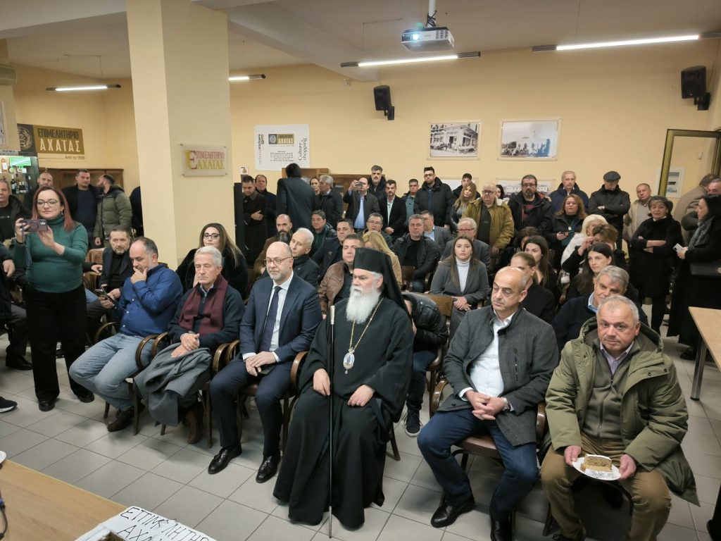 Την πίτα ευλόγησε ο σεβασμιώτατος Μητροπολίτης Αιγιαλείας και Καλαβρύτων κ.κ. Ιερώνυμος. Ενώ στην εκδήλωση βραβεύτηκαν η Παναιγιάλεια Ένωση Συνεταιρισμών (Π.Ε.Σ), η Οινοποιία Cavino και η Achaia Fruits για την προσφορά τους στην τοπική κοινωνία.