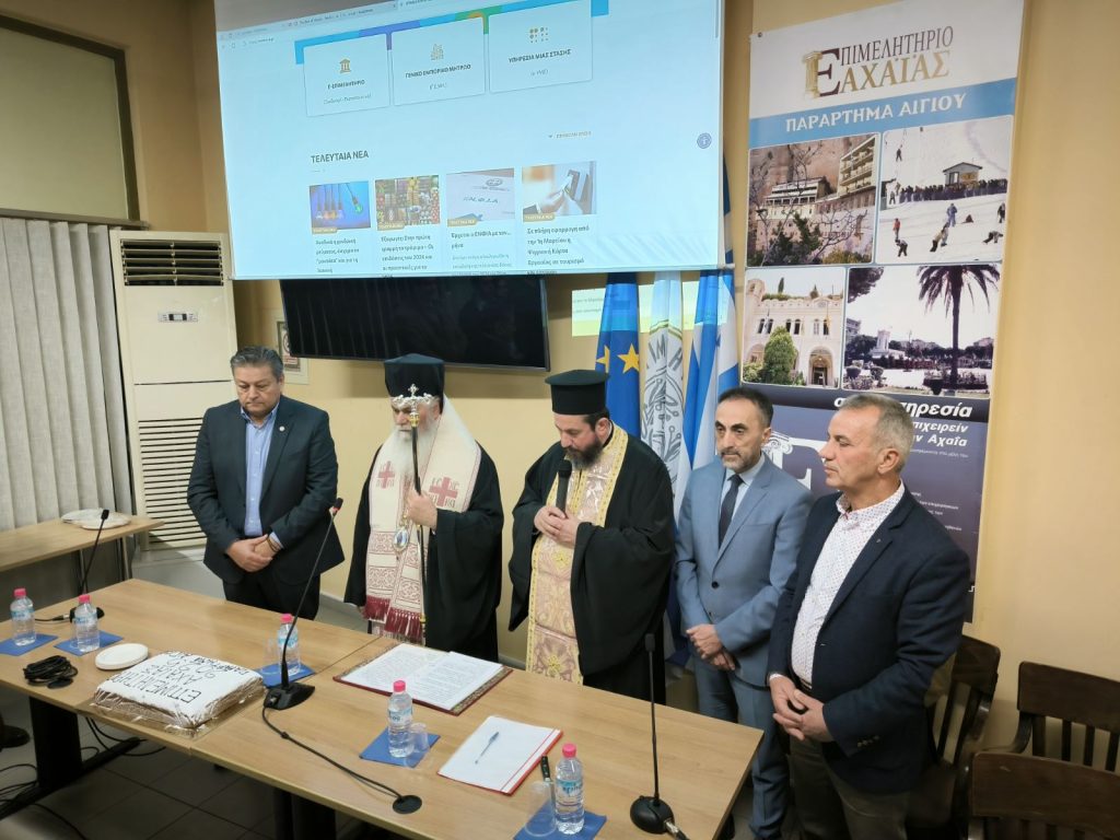 Η κοπή της πρωτοχρονιάτικης πίτας του Επιμελητηρίου Αχαΐας για το παράρτημα Αιγιάλειας πραγματοποιήθηκε το απόγευμα της Τετάρτης, με τη νέα διοίκηση του φορέα να αποδεικνύει από τις πρώτες εβδομάδες της πως η περιοχή βρίσκεται στο επίκεντρο του ενδιαφέροντος. Στη νέα διοίκηση συμμετέχουν δύο παρατάξεις από την Αιγιάλεια, με εκπροσώπους στη διοικητική τον Β’ αντιπρόεδρο Τάκη Βασιλείου και τον υπεύθυνο ΓΕΜΗ Γιώργο Σακελλαρόπουλο.