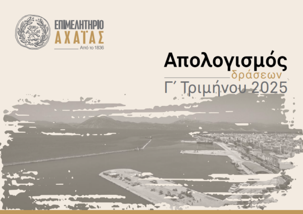 Απολογισμός Γ’ Τριμήνου Επιμελητηρίου Αχαΐας: Συνεχής δράση και θεσμική παρουσία για την ενίσχυση της τοπικής επιχειρηματικότητας Post Thumbnail 15 Οκτ, 2025 Απολογισμός Γ’ Τριμήνου Επιμελητηρίου Αχαΐας: Συνεχής δράση και θεσμική παρουσία για την ενίσχυση της τοπικής επιχειρηματικότητας Περισσότερα