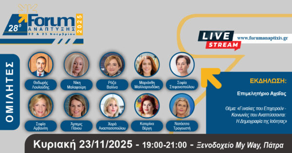 To 28ο Forum Ανάπτυξης στην Πάτρα 22 και 23 Νοεμβρίου Post Thumbnail 19 Νοέ, 2025 To 28ο Forum Ανάπτυξης στην Πάτρα 22 και 23 Νοεμβρίου Περισσότερα