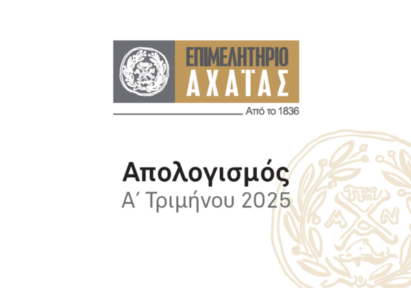 Μήνυμα της Διοίκησης για τον απολογισμό του Α’ τριμήνου 2025 του Επιμελητηρίου Αχαΐας Post Thumbnail 30 Απρ, 2025 Μήνυμα της Διοίκησης για τον απολογισμό του Α’ τριμήνου 2025 του Επιμελητηρίου Αχαΐας Περισσότερα